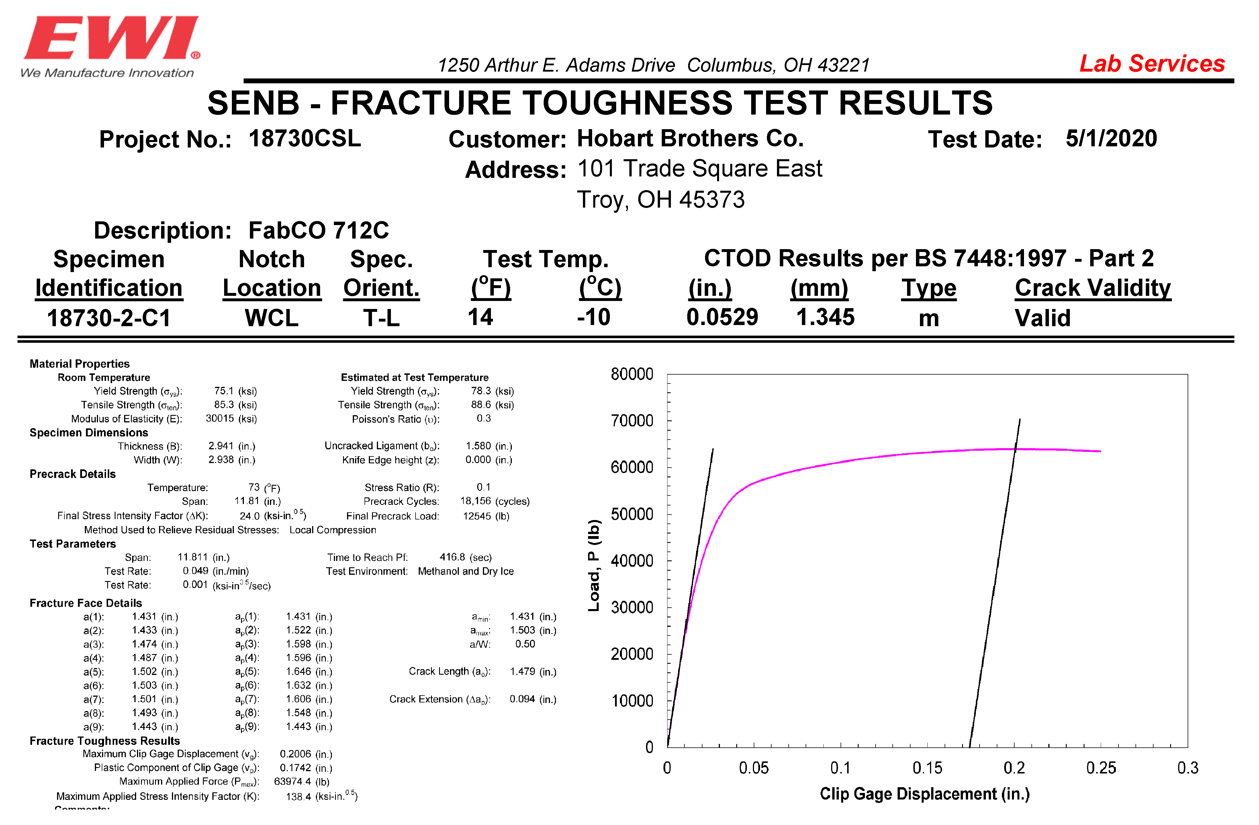 FabCO 712C CTOD实验数据