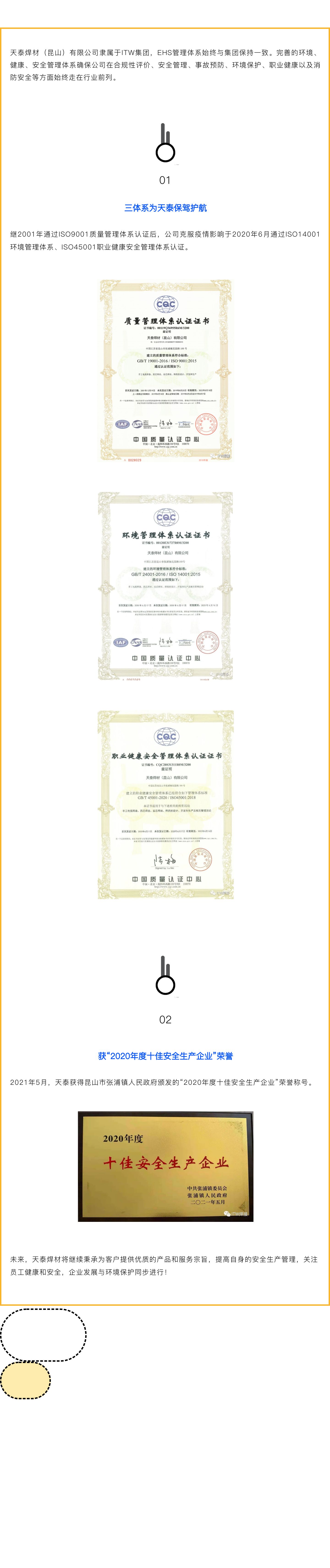 天泰焊材荣获“2020年度十佳安全生产企业”称号