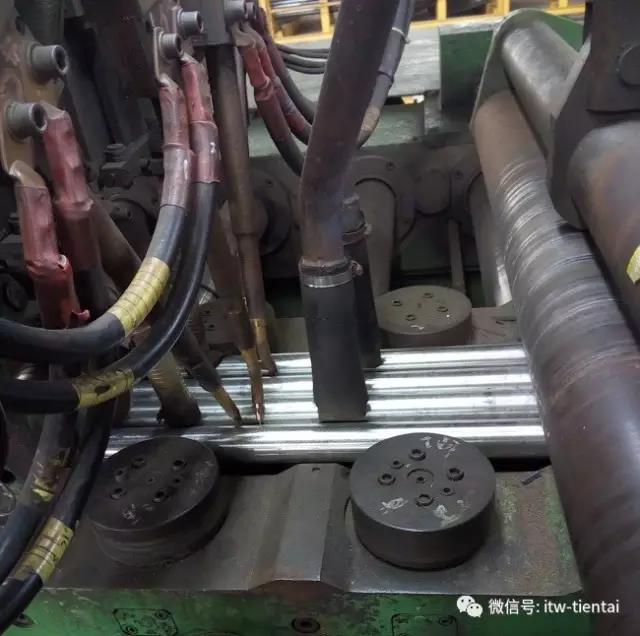 TP347H不锈钢管道采用固溶加稳定化热处理状态交货,具有良好的焊接性。国内知名锅炉厂TP347H管屏结构,管屏尺寸Φ180mm*8mm+6mm*12mm。为提高生产效率,选用埋弧焊接方法,选用天泰埋弧焊材TFS-330+TW-347进行焊接,适用于高效自动化(焊接速度达到850mm/min)生产车间。管屏焊接组装如下图: